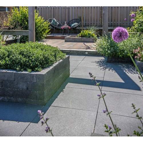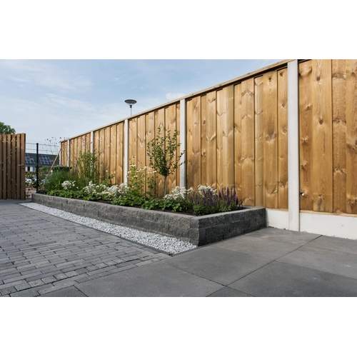 Dankzij de strakke bovenzijde bouw je snel een stevige en nette tuinmuur of border. Dit stapelblok is ook verkrijgbaar in andere kleuren en afmetingen.
